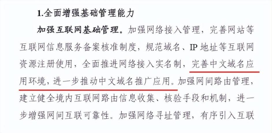 中拓互联了解到,近年来,国家积极鼓励和支持中文域名系统的技术研究和推广应用。国务院办公厅印发的《政府网站发展指引》和工信部发布的《互联网域名管理办法》都提到了中文域名的推广应用。2021年11月,工业和信息化部发布的《“十四五”信息通信产业发展规划》中也明确指出,“完善中文域名应用环境,进一步推动中文域名推广应用”。5月25日,中国互联网协会携手北京师范大学新闻传播学院联合举办互联网治理与中文域名系列讲座,以“互联网普遍适用与中文域名”为主题介绍了中文域名的缘起、实现和挑战,引导青年人正确面对和认识互联网。
